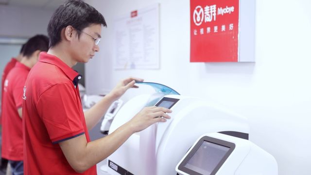 在店里见不到收银台,这里使用无现金操作。顾客通过麦拜眼镜APP进行配镜下单,输入验光数据可以长期保存,若顾客以后需要重新配镜,不再担心忘记度数,只需登录查看验光记录即可,方便许多没时间特地去配镜的白领和宅控。